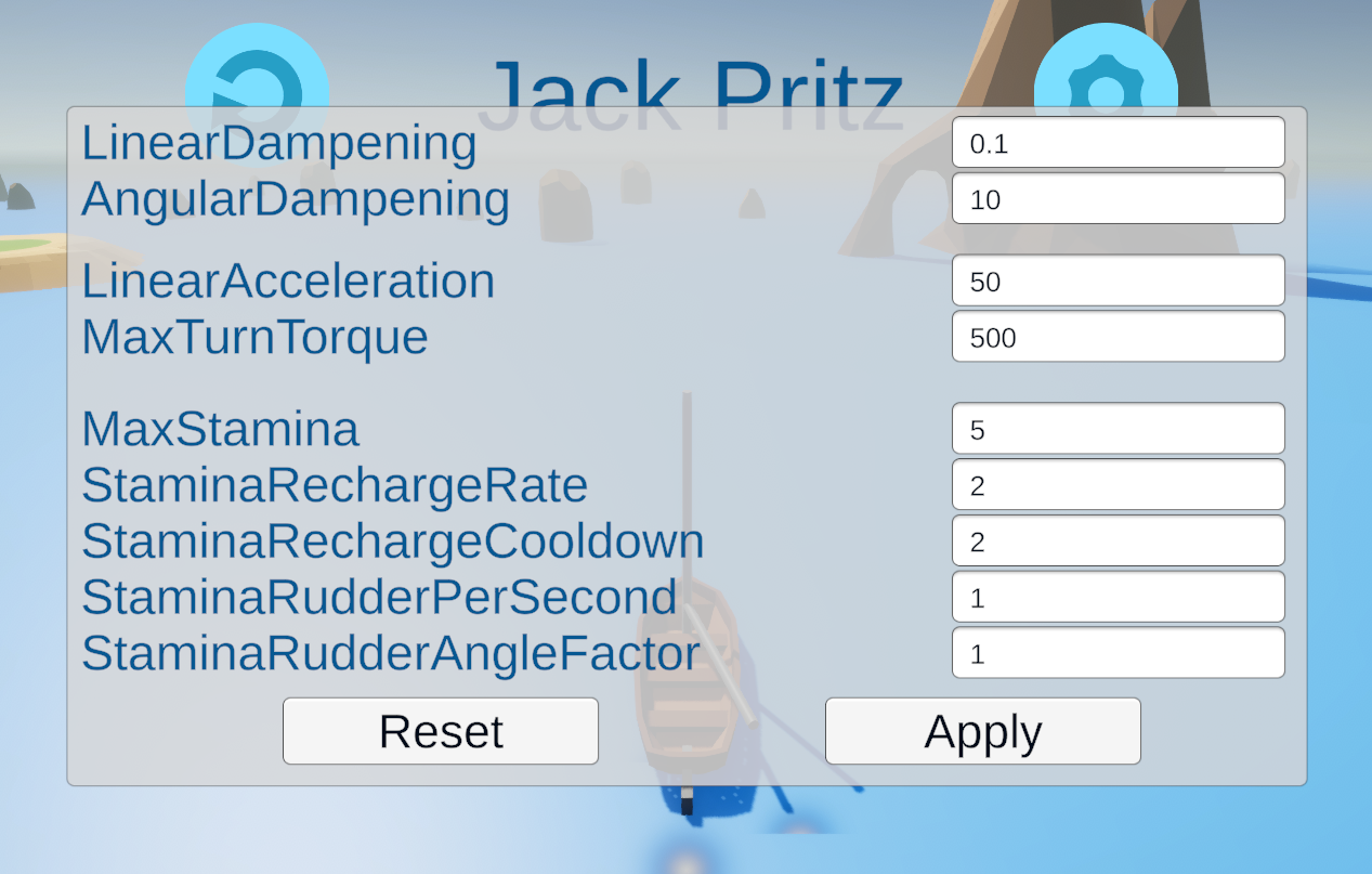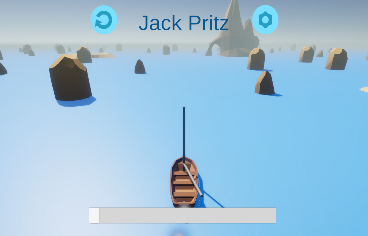 Use keyboard or gamepad to steer a boat. Steering takes stamina, which regenerates after a cooldown.